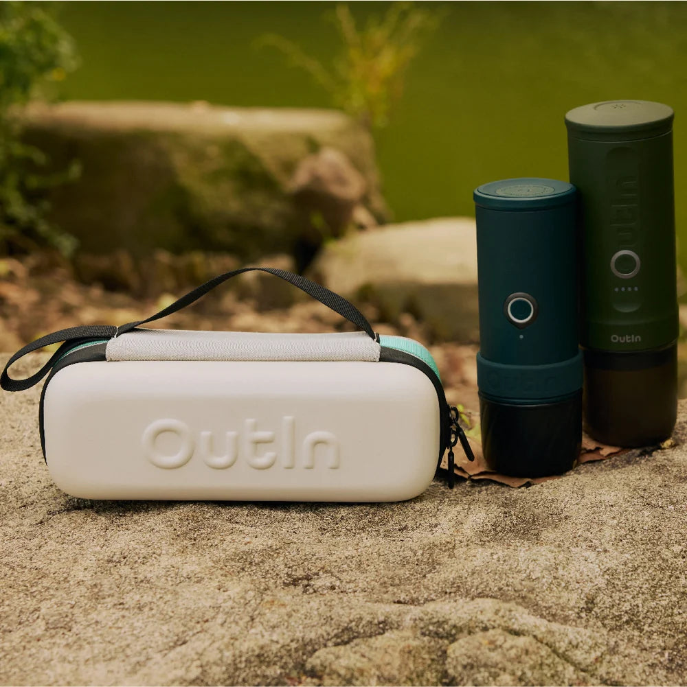 Progettata per viaggi e avventure, la custodia protettiva OutIn EVA protegge i tuoi accessori per il caffè anche sotto la pioggia leggera e durante l'uso quotidiano.